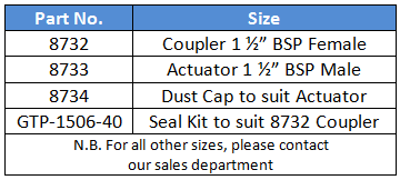 GTP-1506-40 Seal Kit to suit 8732 Coupler